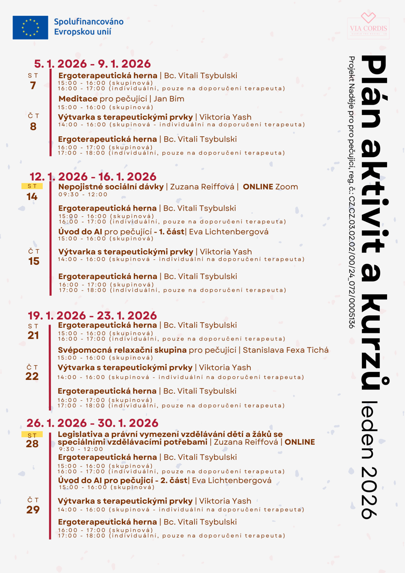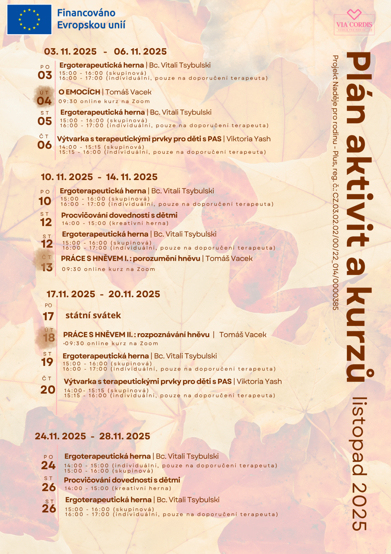 Kurzy a aktivity jsou určeny rodinám s dětmi s PAS a s jinými neurovývojovými poruchami, které patří do projektu Naděje pro rodinu Praha - Plus.